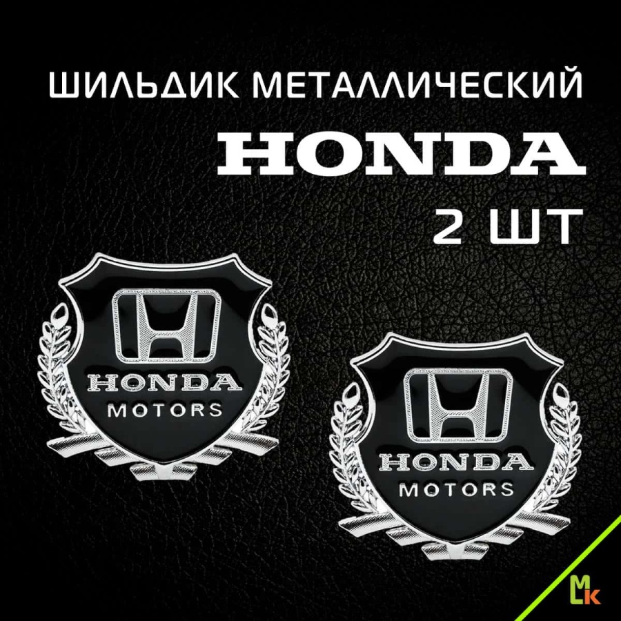 Шильдик Honda Motors черный металл 55*50мм 2шт SHK K211