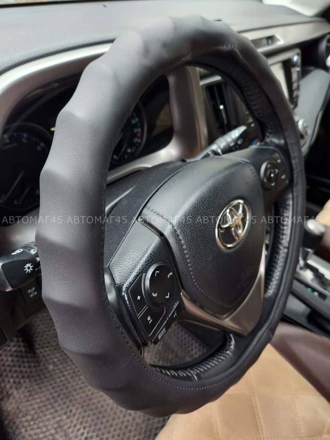 Оплетка на руль выполнена полностью из гладкой эко-кожи.