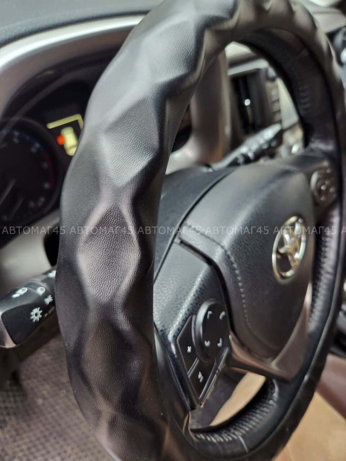 Оплетка на руль выполнена полностью из гладкой эко-кожи.