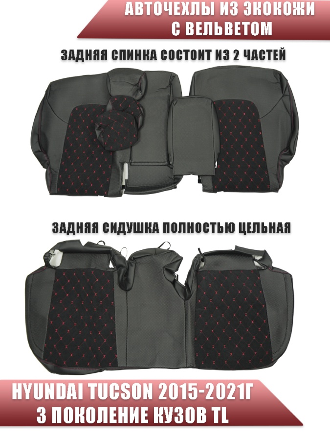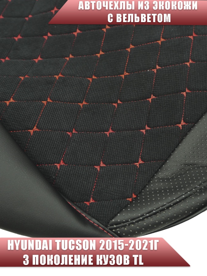 Авточехлы Hyundai Tucson 3 Хендай Туксон 3 кузов TL 2015-2021г экокожа вельвет черн.крас.нить ромб