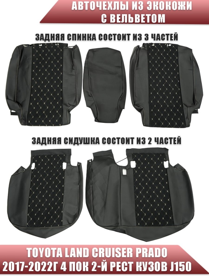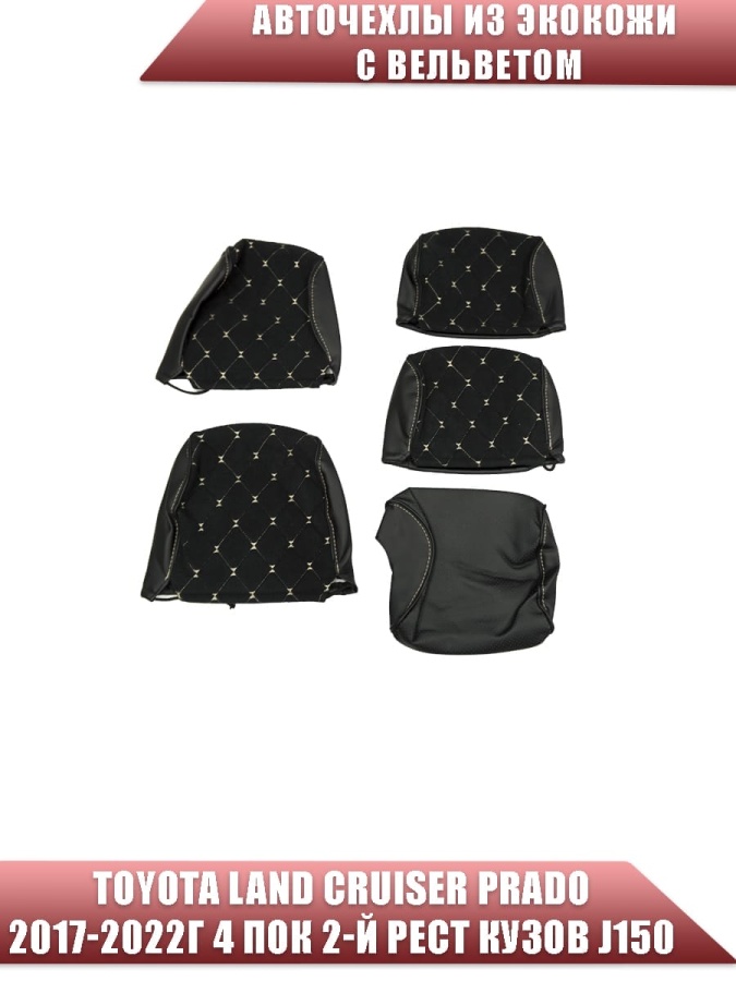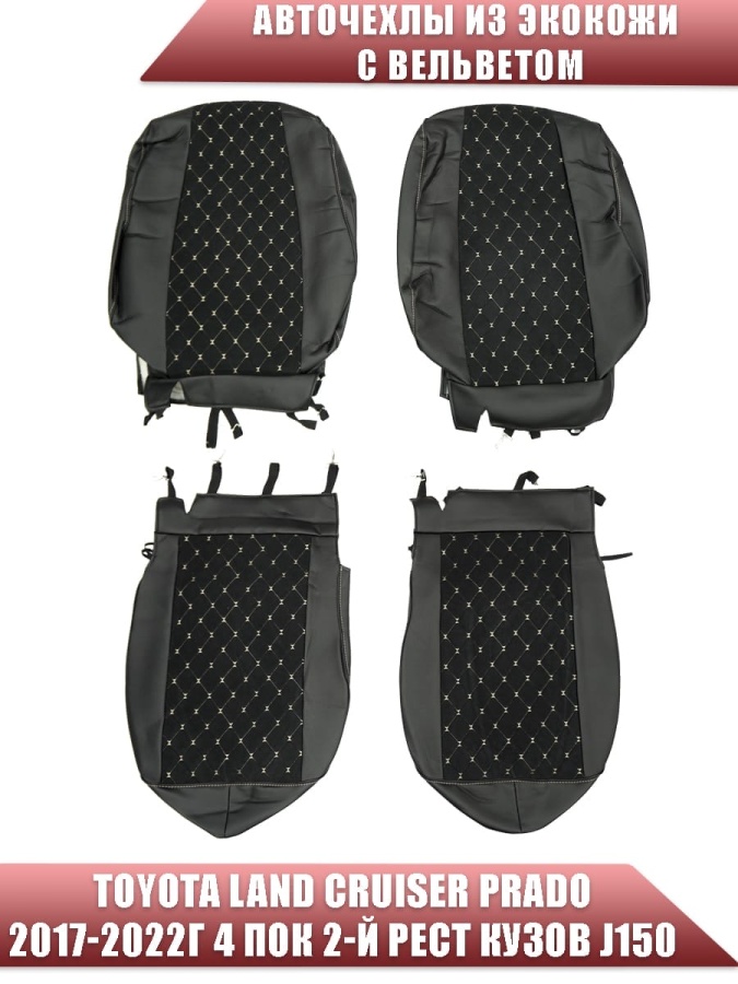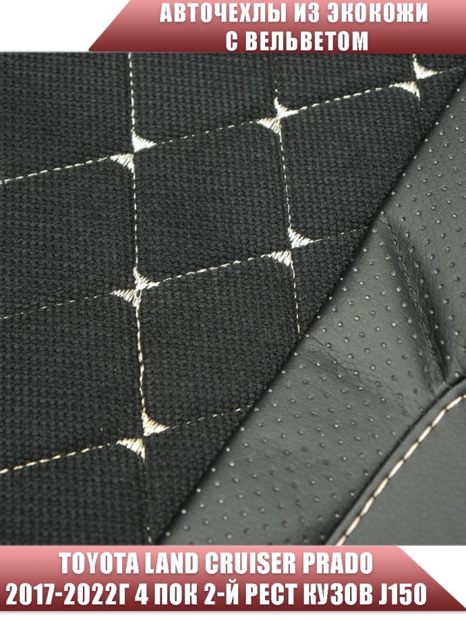 Авточехлы Toyota Land Cruiser Prado 2017-2022г кузов J150 экокожа вельвет черная бежев нить Maximal