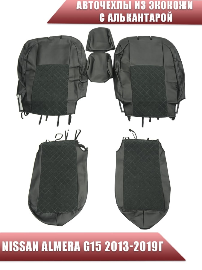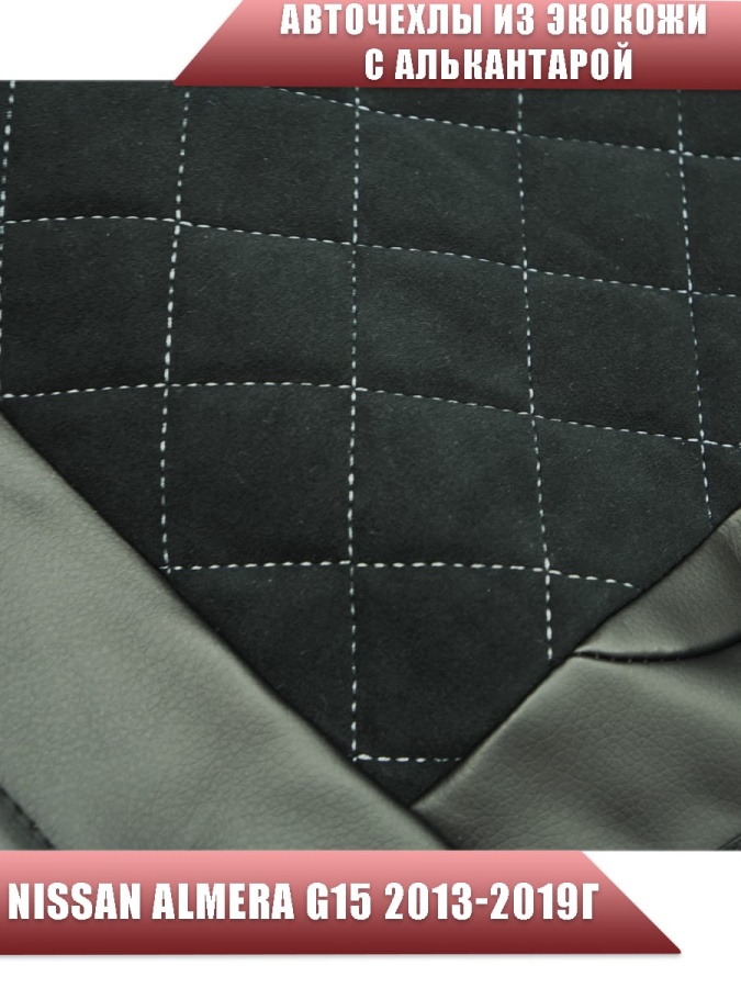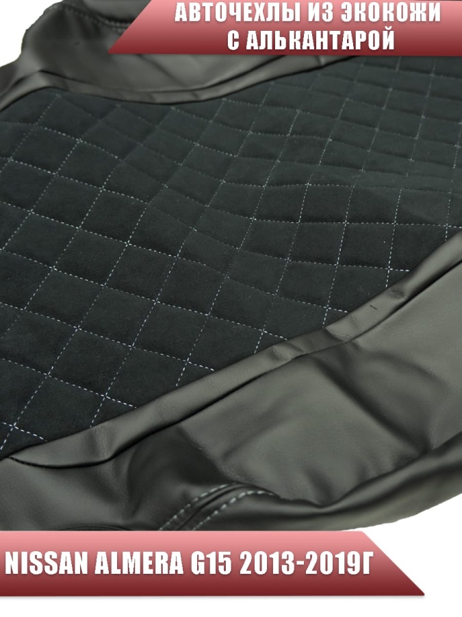 Авточехлы Nissan Almera Ниссан Альмера 2013-2019г 1/1 экокожа алькантара черный ромб