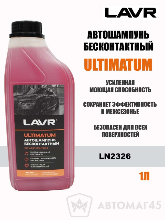 Автошампунь Ultimatum LAVR — это мощный инструмент для профессиональной бесконтактной мойки, обеспечивающий безупречную чистоту и защиту вашего автомобиля.