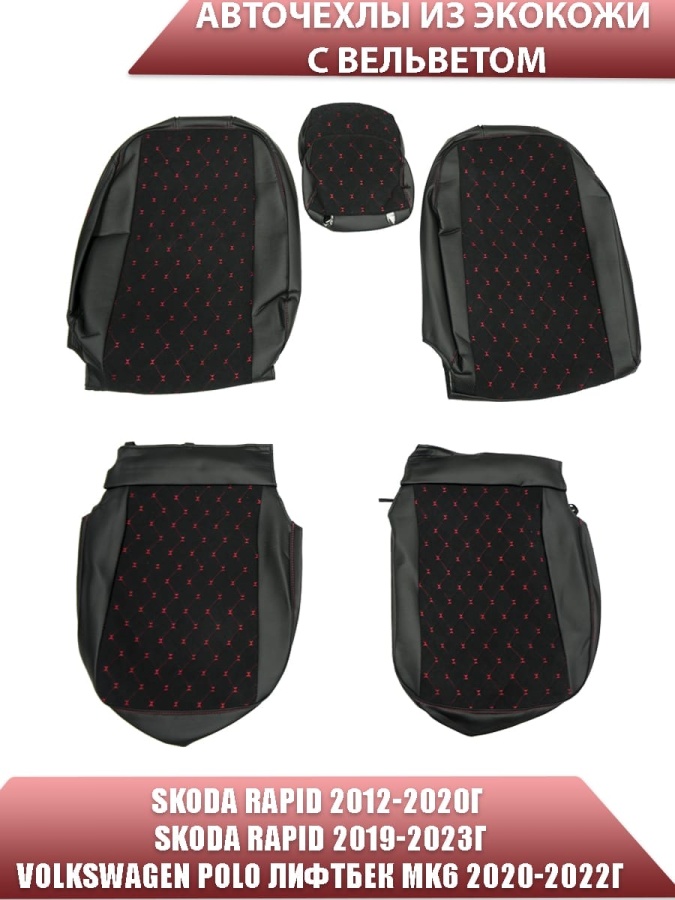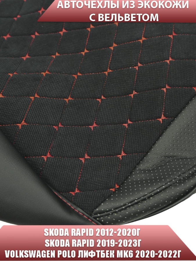 Авточехлы Skoda Rapid с 2012г 2/3 Volkswagen Polo лифтбэк с 2020г экокожа вельвет черная ромб