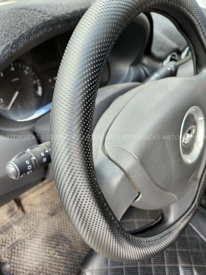 Оплетка на руль выполнена полностью из эко-кожи(имитация фактуры "карбон")