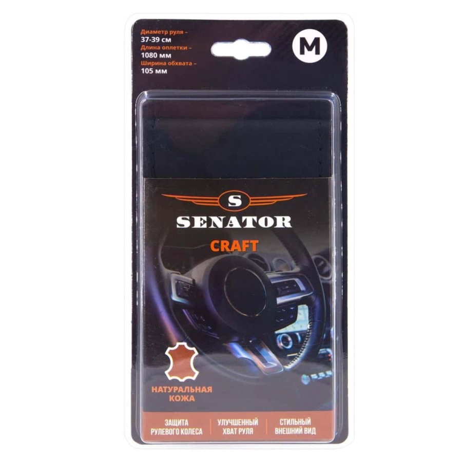 Senator Craft оплетка руля фактурная р-р M диаметр 37-39см натур кожа черная
