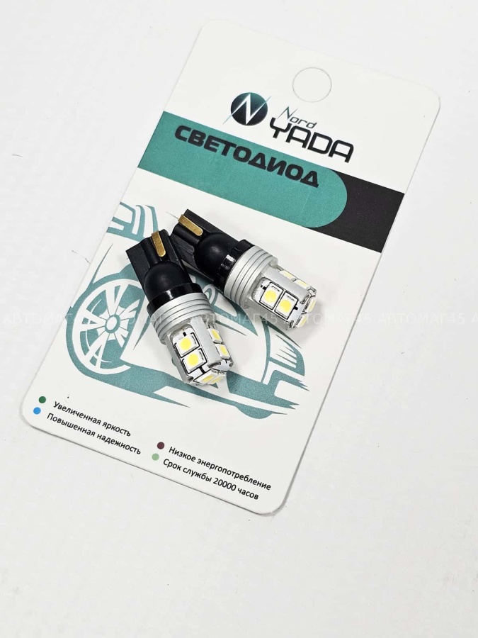 Nord Yada лампа светодиодная суперяркая T10 10 SMD Canbus W5W 12V 6000K 300LM 1шт