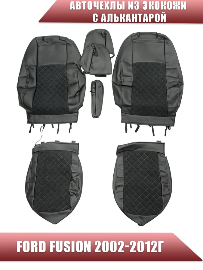Авточехлы Ford Fusion Форж Фьюжен 2002-2012г экокожа алькантара черный ромб