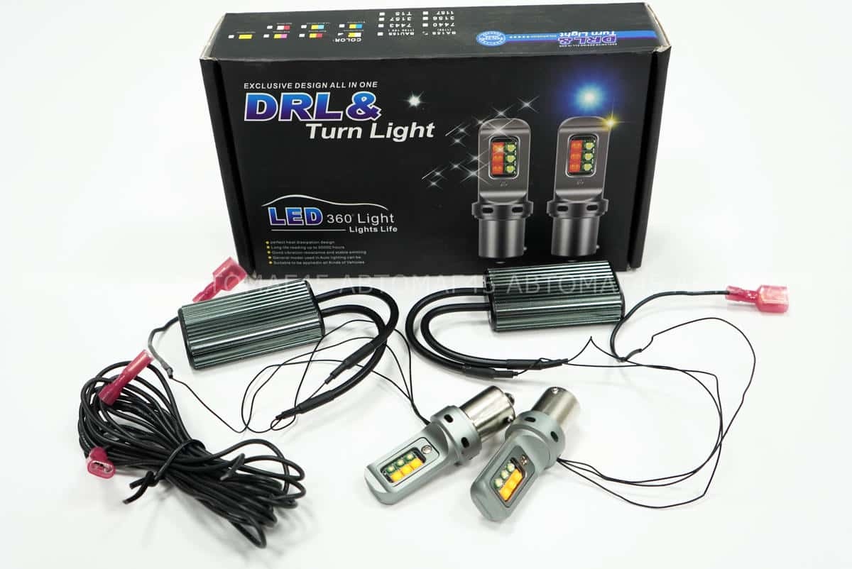 Штатные дневные ходовые огни 12SMD для цоколя P21W (S25 / PY21W / 1156 / BaU15) с функцией повторителя поворота и дневных ходовых огней устанавливаются в штатное посадочное место поворотника.