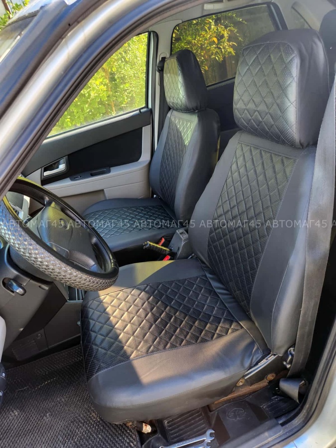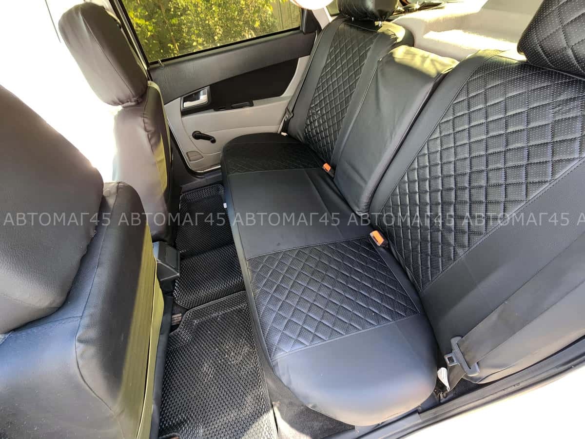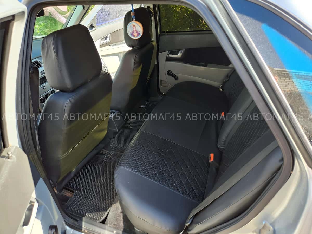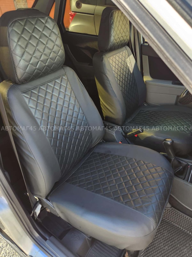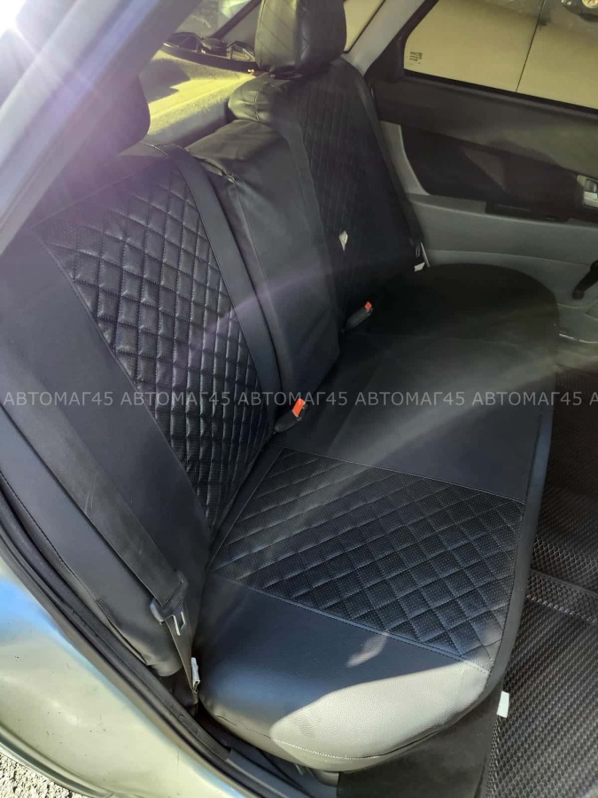 Авточехлы ВАЗ 2111 2112 Приора хэтчбек до 2014г экокожа черная с черной ниткой ромб Барс