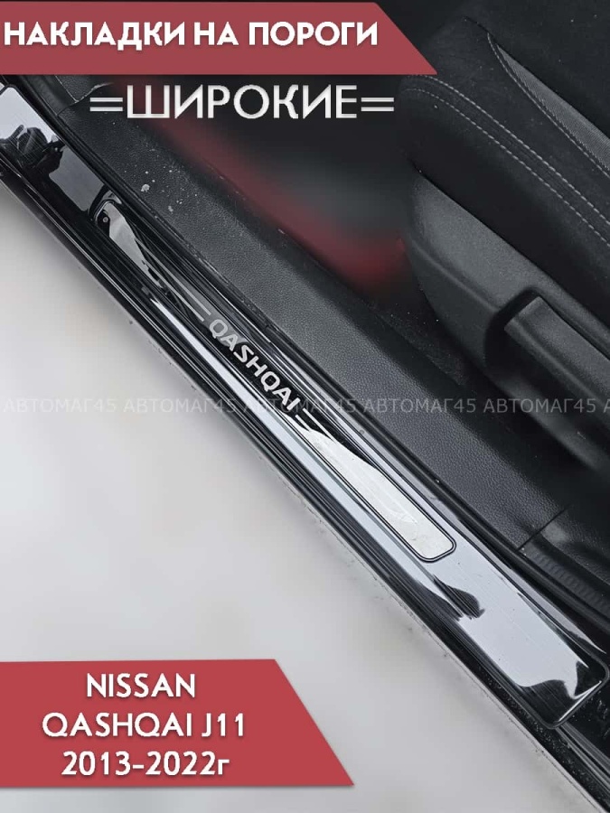 Накладки на внутр пороги Nissan Qashqai Ниссан Кашкай J11 2013-2022г широкие черные алюминий 4шт