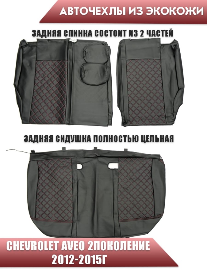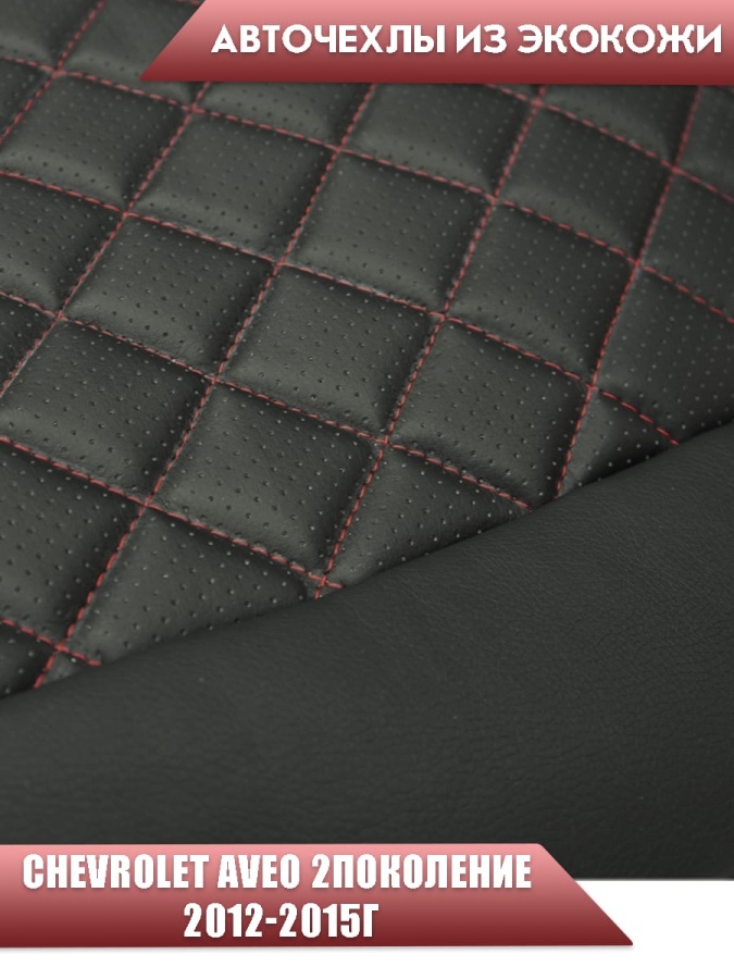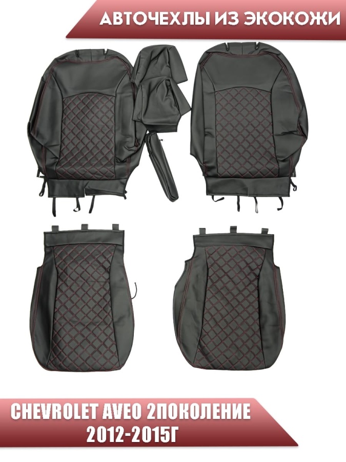 Авточехлы Chevrolet Aveo Шевроле Авео 2пок 2012-2015г экокожа черная нить красная ромб