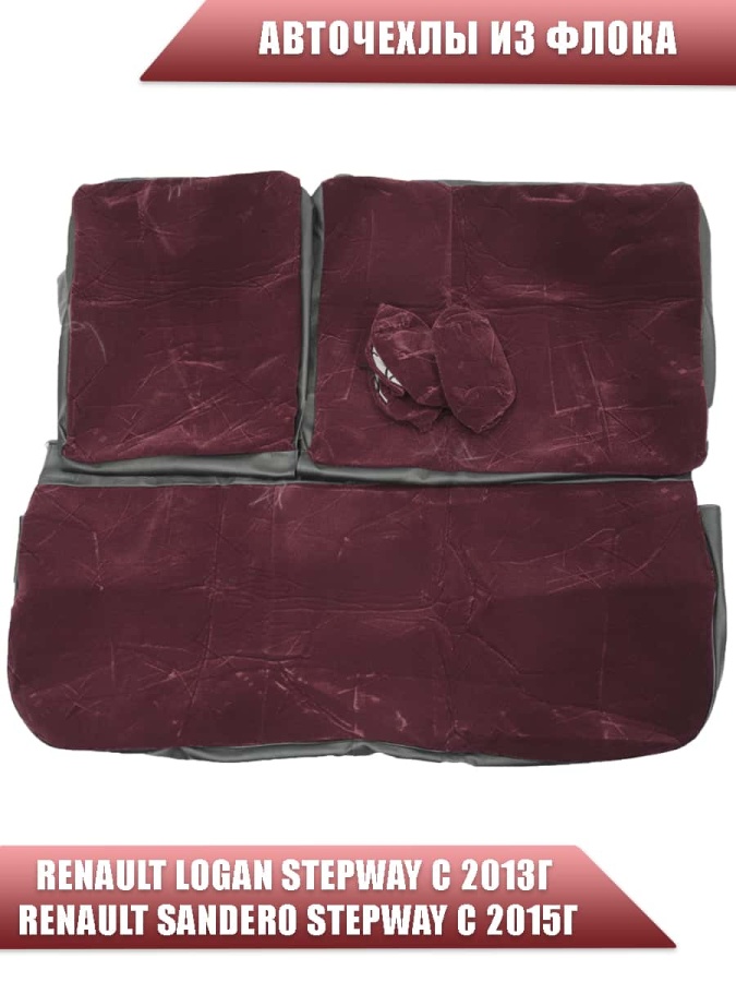 Авточехлы Renault Logan Stepway с 2013г Renault Sandero Stepway с 2015г 2/3 красный флок