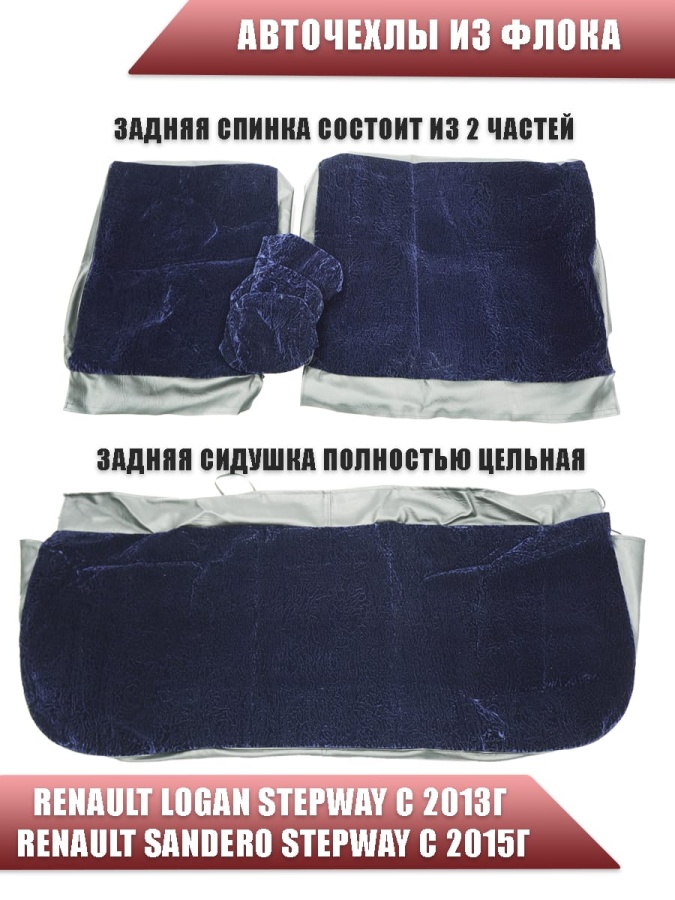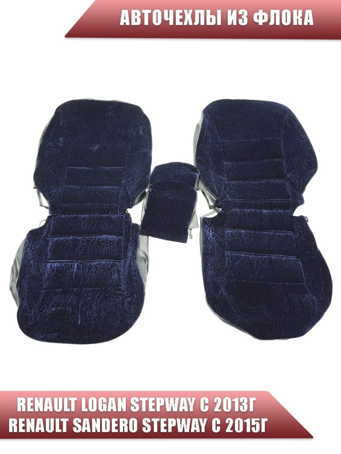 Авточехлы Renault Logan Stepway с 2013г Renault Sandero Stepway с 2015г 2/3 синий флок
