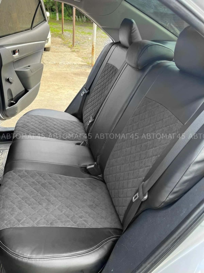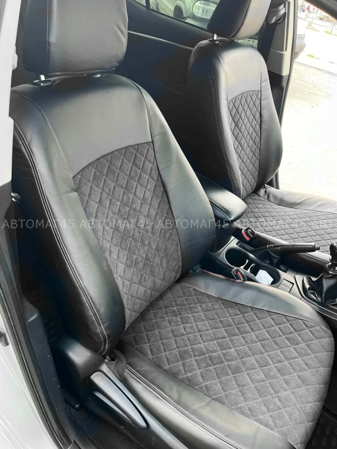 Авточехлы Toyota Corolla Тойота Королла 2013-2019г кузов 160 180 экокожа алькантара серая нить ромб