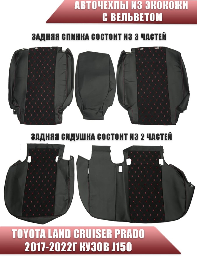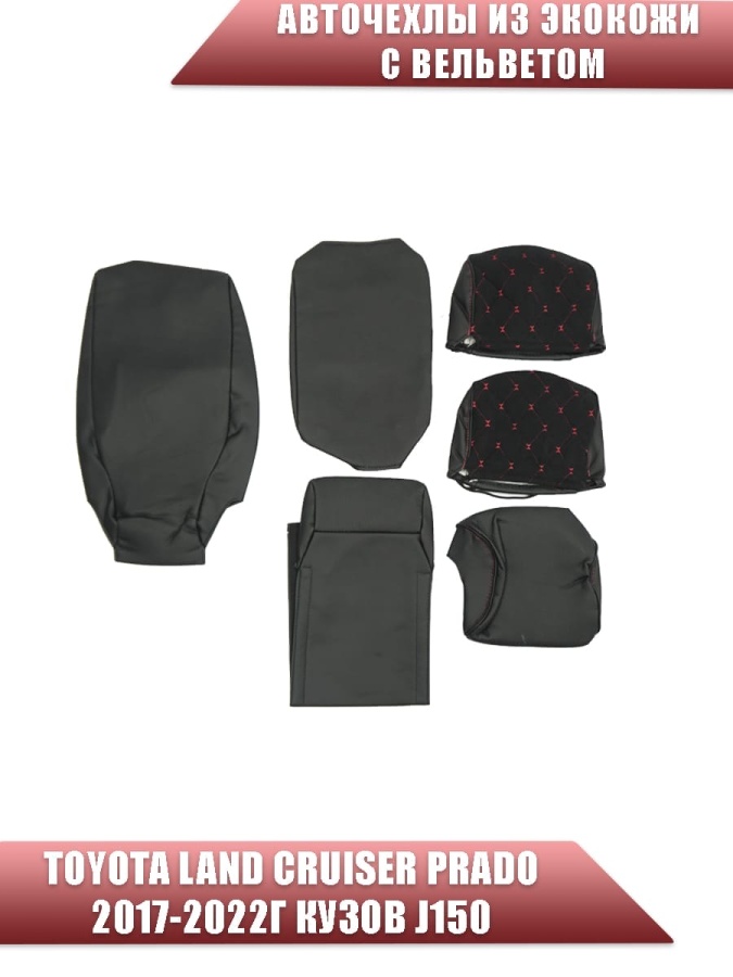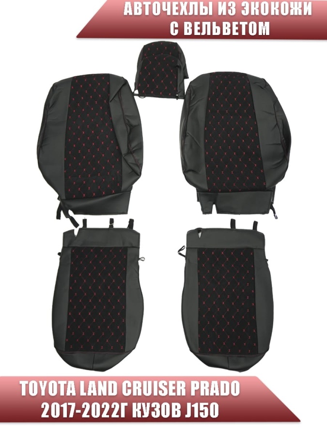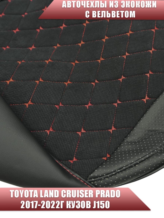 Авточехлы Toyota Land Cruiser Prado 2017-2022г кузов J150 экокожа вельвет черная красн нить Maximal