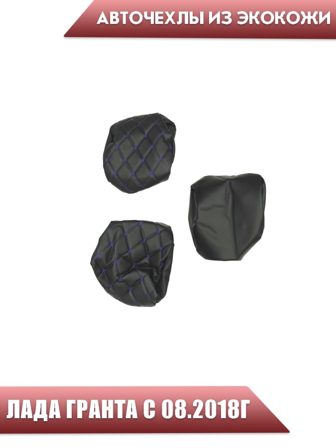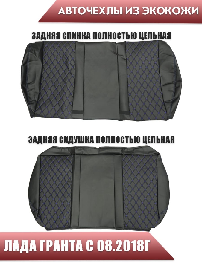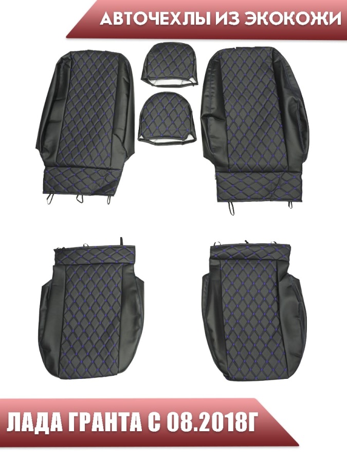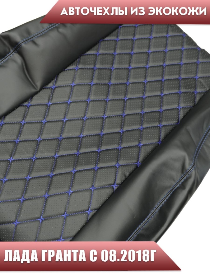 Авточехлы Лада Granta Гранта 1/1 с 08.2018г экокожа черная с синей ниткой ромб Офис