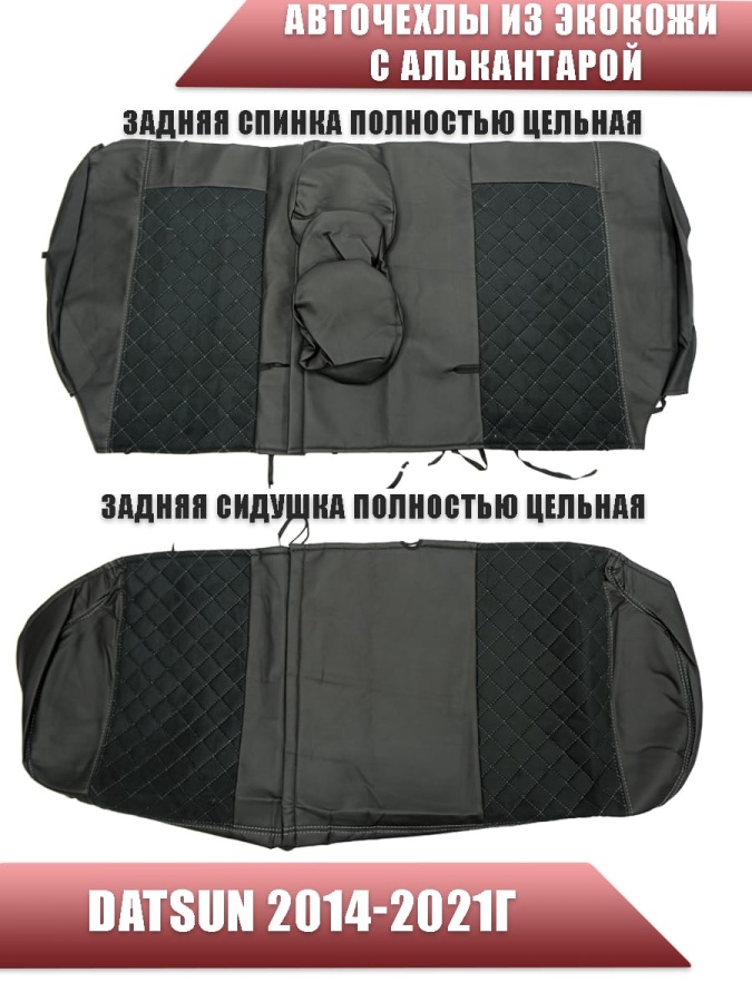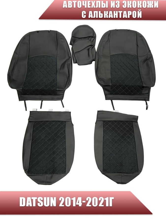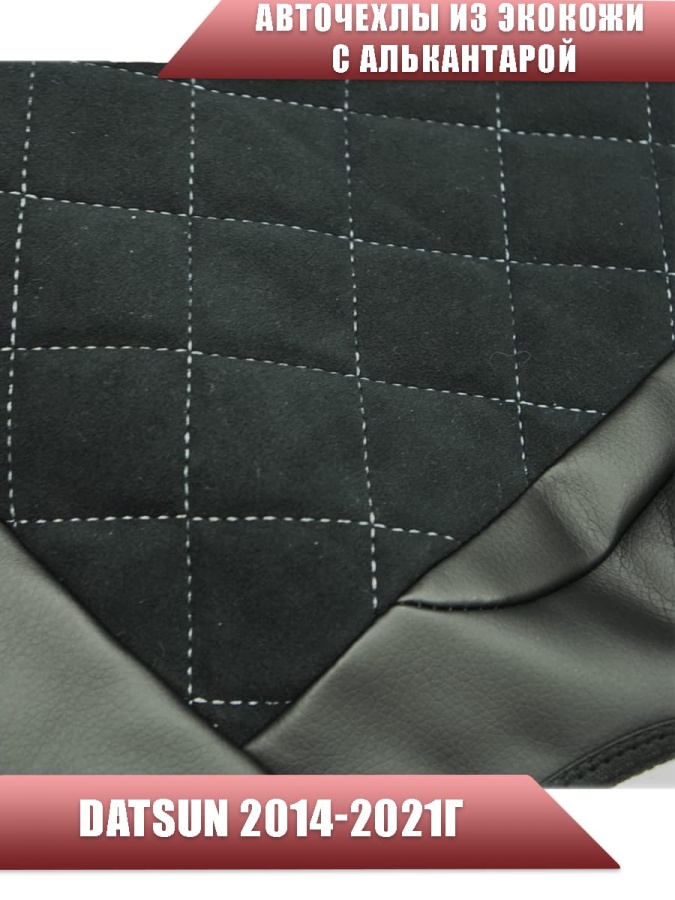 Авточехлы Datsun Датсун 1/1 2/3 экокожа алькантара черная серая нить ромб