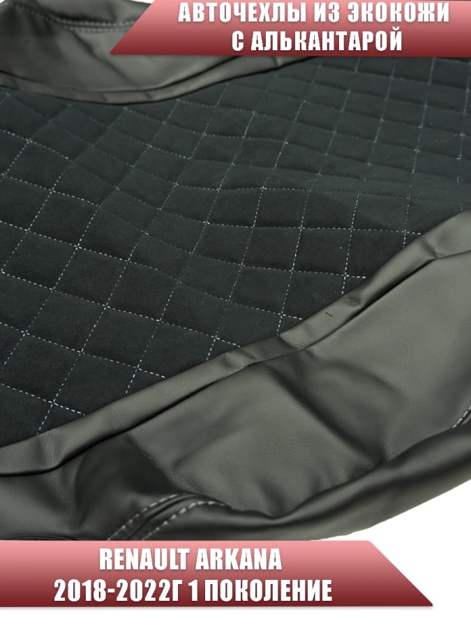 Авточехлы Renault Arkana Рено Аркана 2018-2022г экокожа алькантара черная серая нить ромб