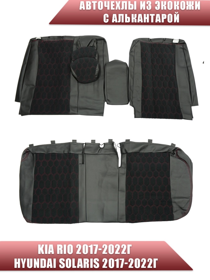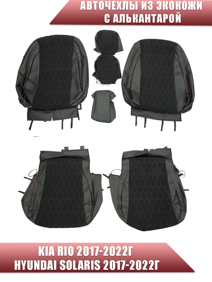 Авточехлы Kia Rio с 2017г Rio X-Line с 2017г Hyundai Solaris c 2017г экокожа алькантара кр.нит соты