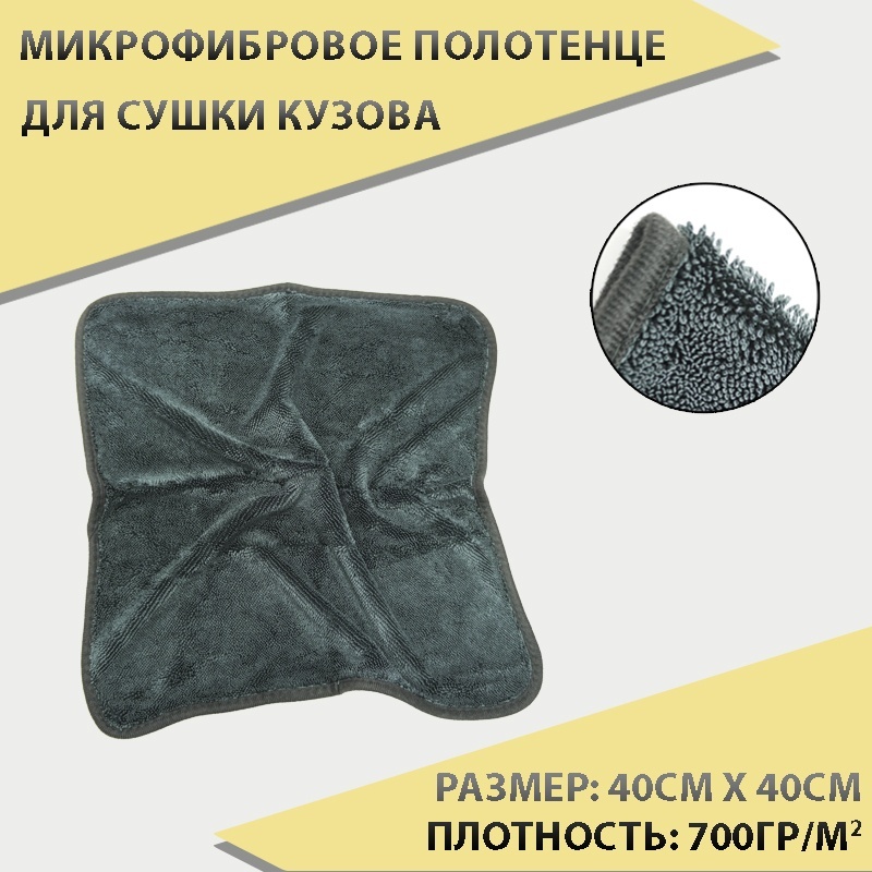 Sem-Ali микрофибровое полотенце для сушки кузова серый 40*40см плотность 700гр/м2 1шт