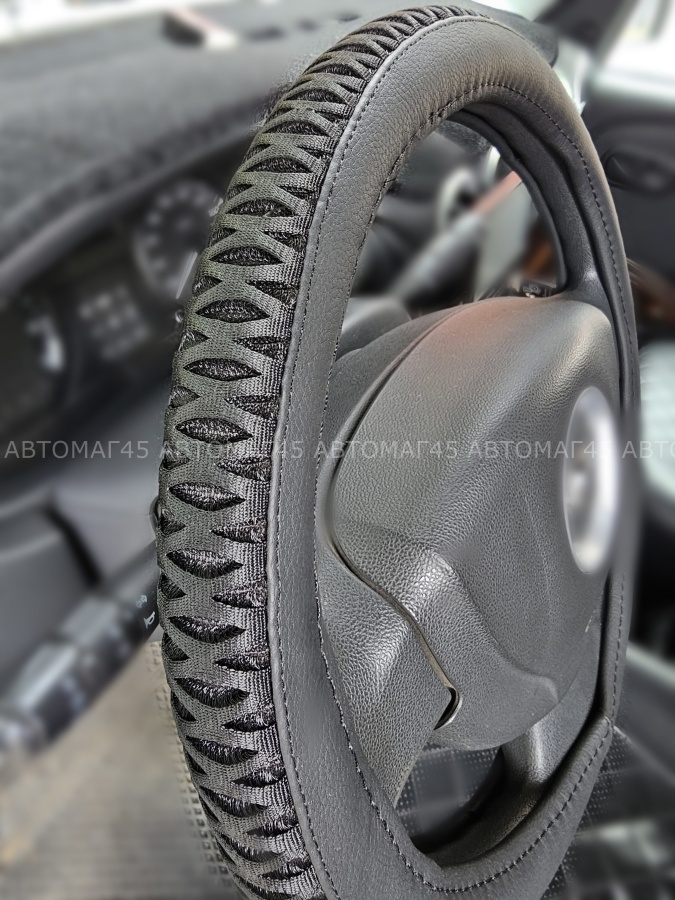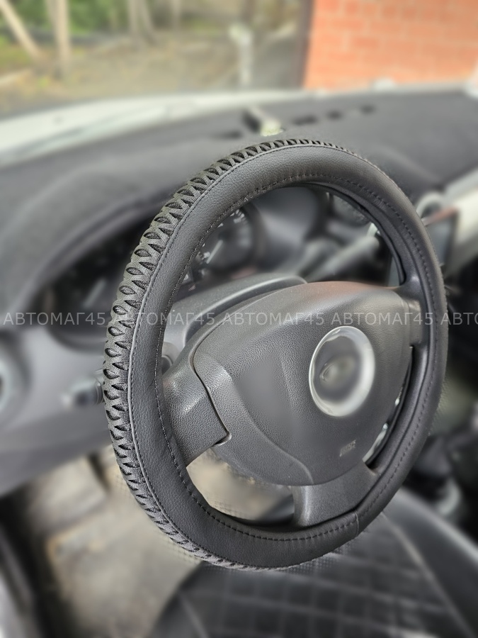 Эта оплетка подойдет на руль размером от 37 до 39 см. Она легко устанавливается и снимается, что позволяет быстро менять дизайн интерьера.