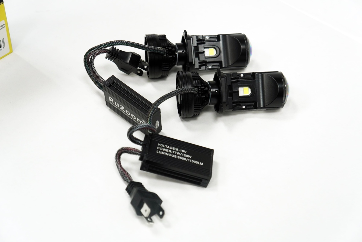 Ruzoom светодиодные лампы LED линза модуль 2шт H4 12В 70W/120W 6500K 6500Lm гарантия 6мес