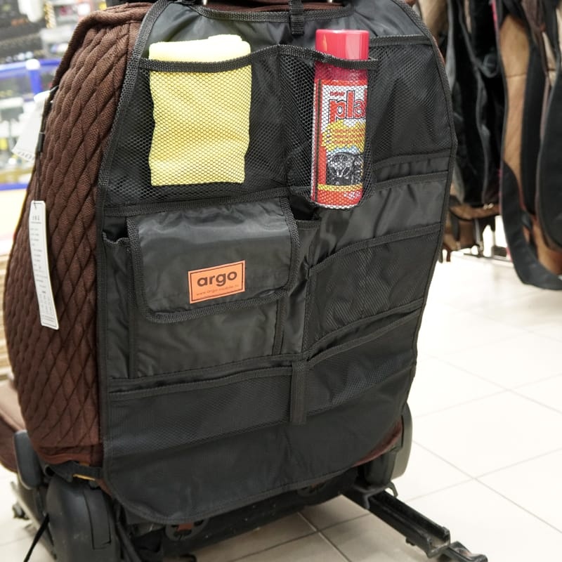 Защита салона: Организатор предотвращает загрязнение и повреждение поверхности спинки переднего сиденья от воздействия детей, грязи и пыли.