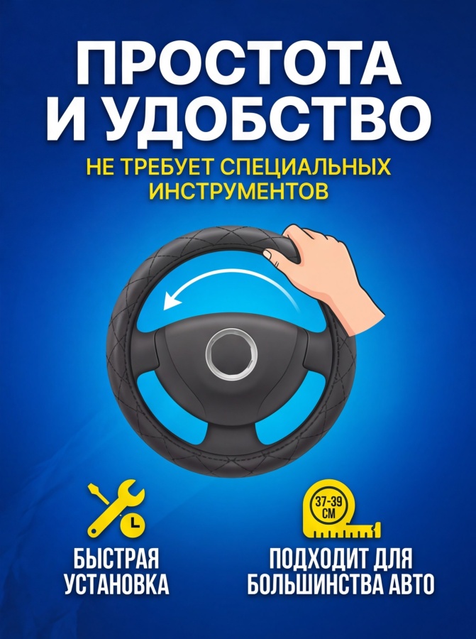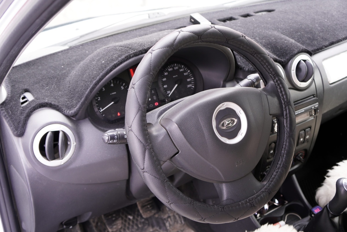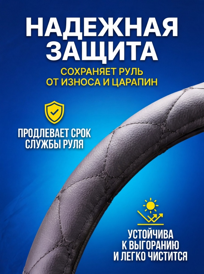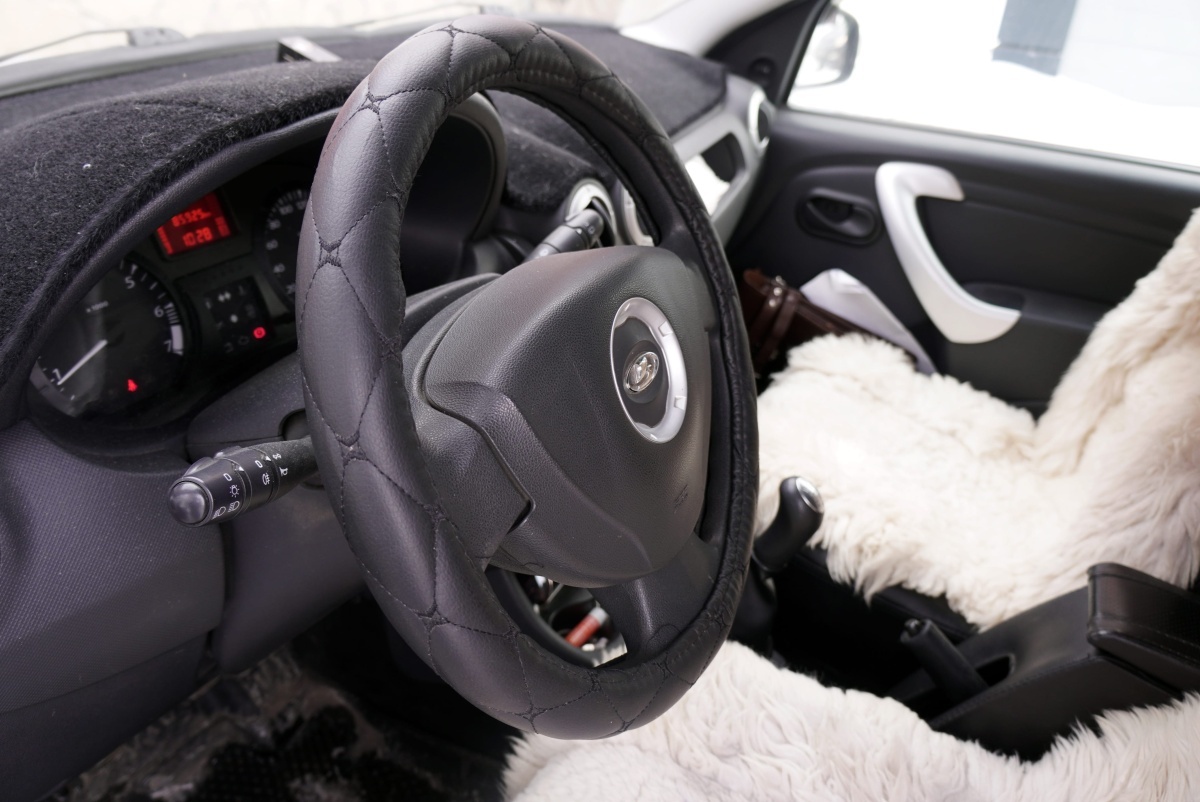 Оплетка на руль выполнена полностью из гладкой эко-кожи.