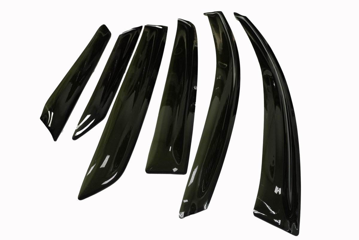 Дефлекторы (ветровики) препятствуют попаданию осадков в приоткрытые окна автомобиля. Каждый дефлектор разрабатывается с индивидуальными особенностями каждой марки автомобиля, который по форме полностью повторяет контуры внешней рамки двери.