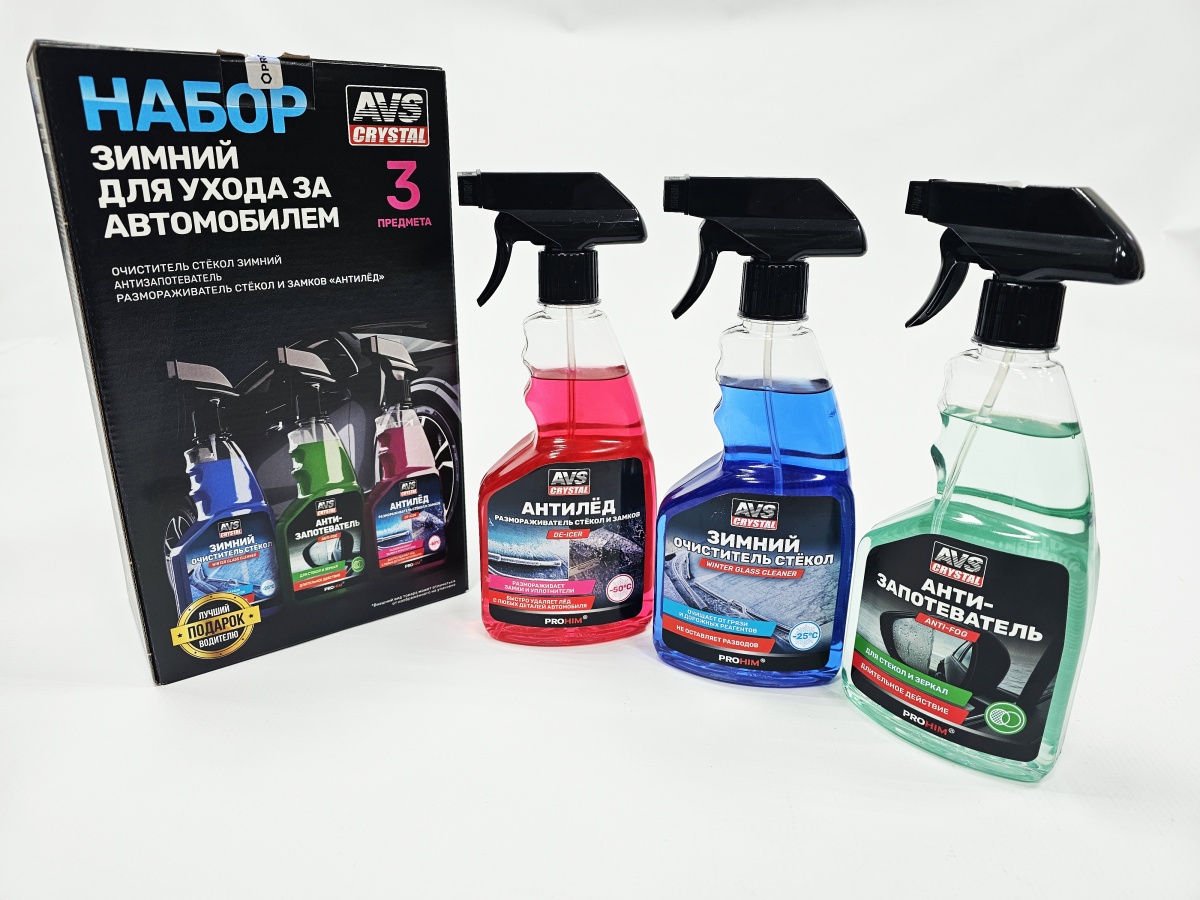 AVS Подарочный набор для ухода за автомобилем Зимний 3предм(очист.стекол,антилед,антизапотеватель)
