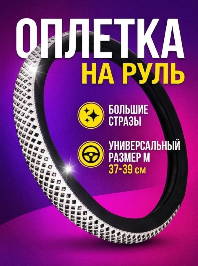 Оплетка руля со стразами черный/белый размер M 36-38см