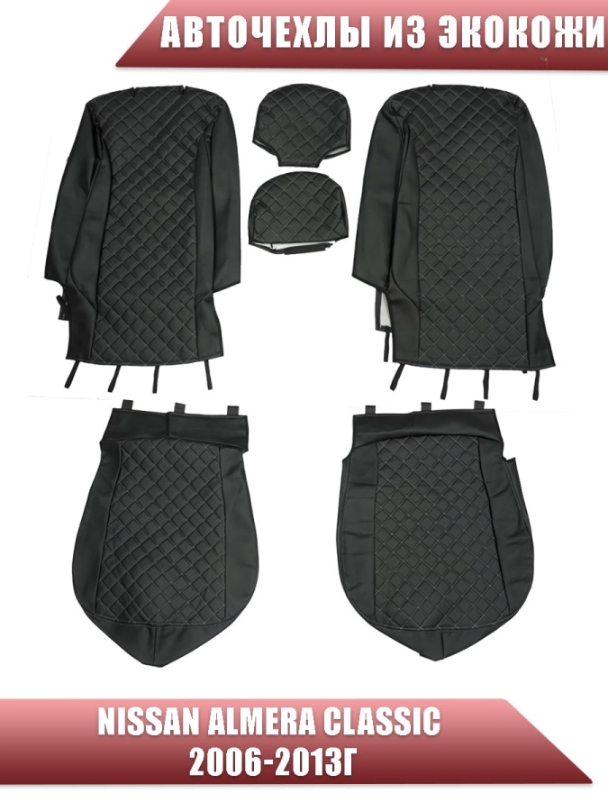Авточехлы Nissan Almera classic Ниссан Альмера классик 2006-2013г экокожа черный ромб серая нить