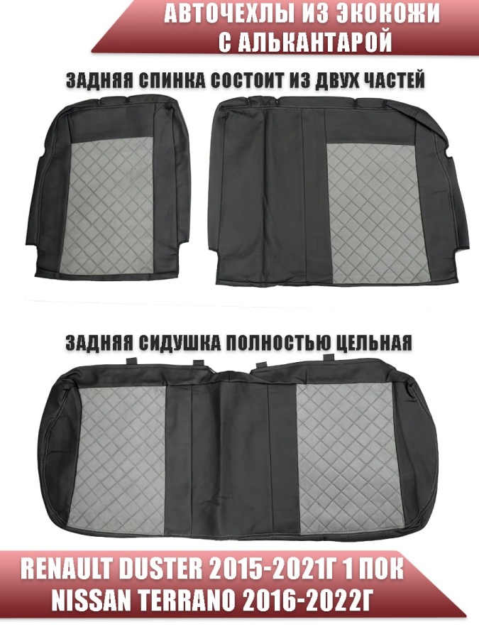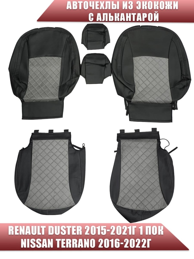 Авточехлы Renault Duster Рено Дастер 2015-2021г 1пок 2/3 Terrano 16-22г экокож/алькан ч/серая ромб