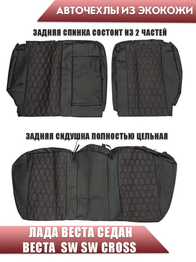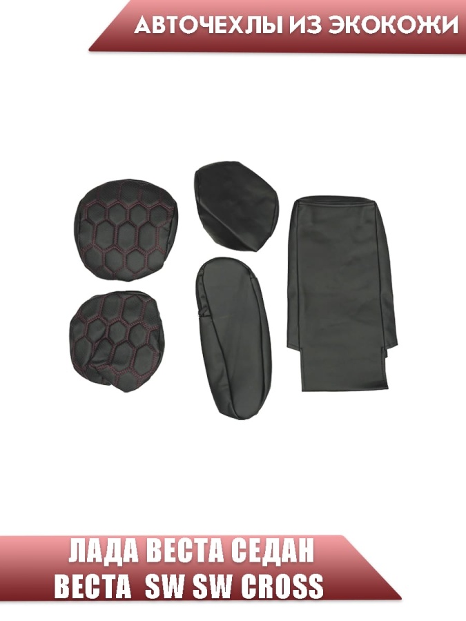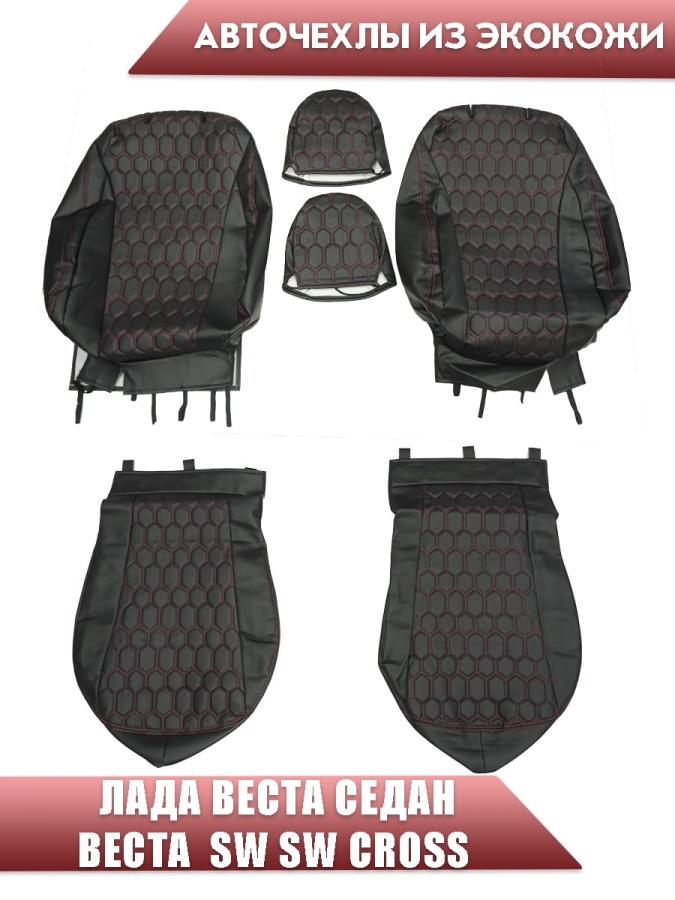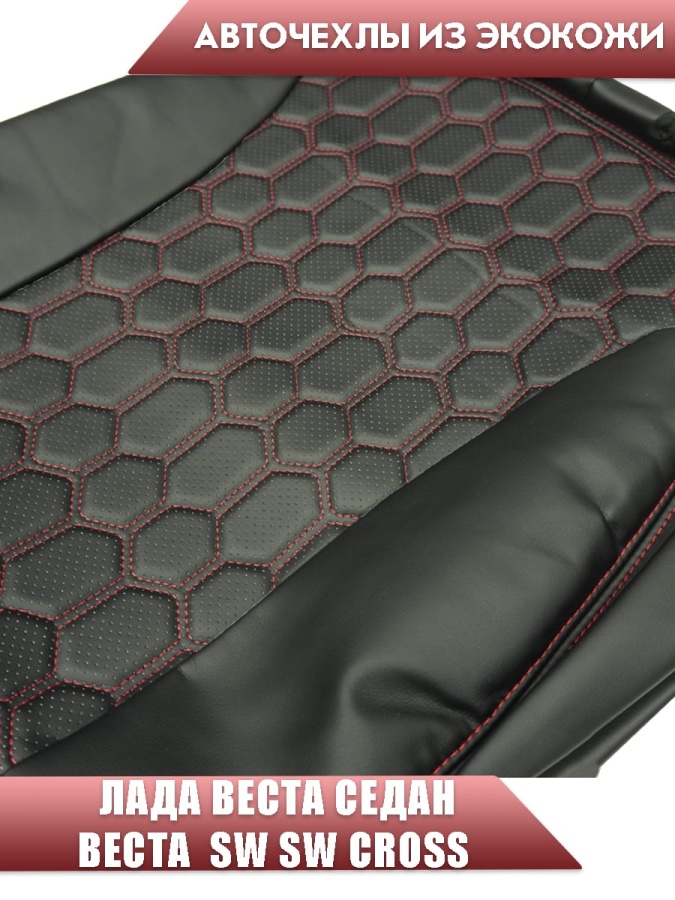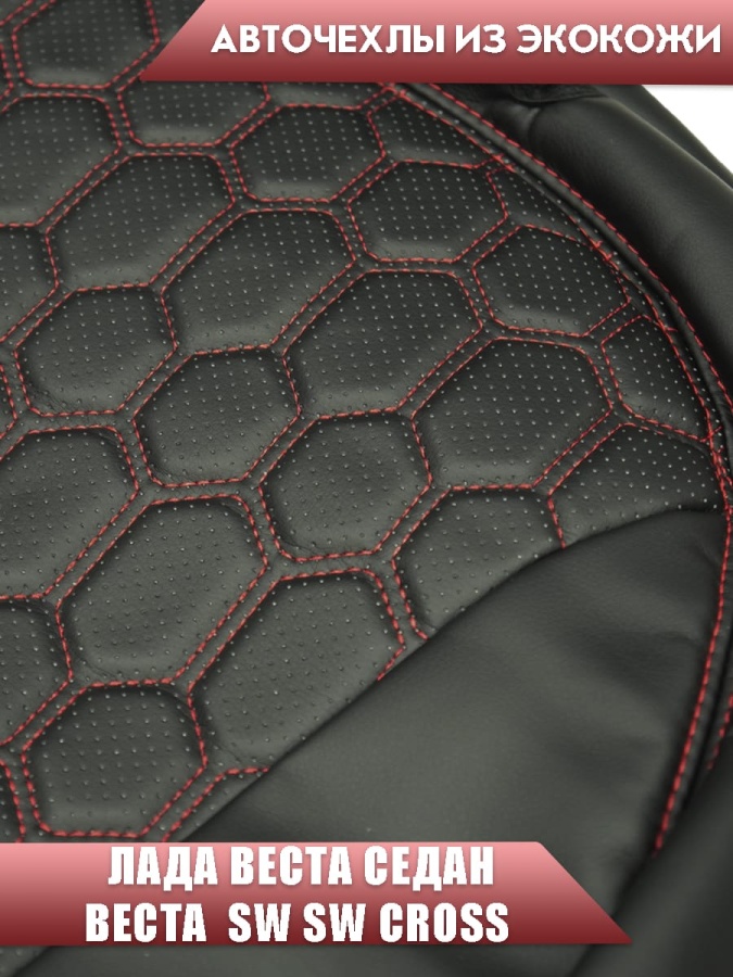 Авточехлы Lada Vesta Лада Веста седан SW SW Cross экокожа черная с красной ниткой соты